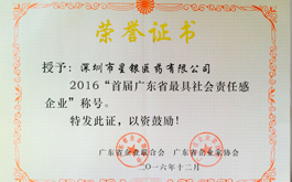 2016首屆廣東省最具社會責(zé)任感企業(yè)