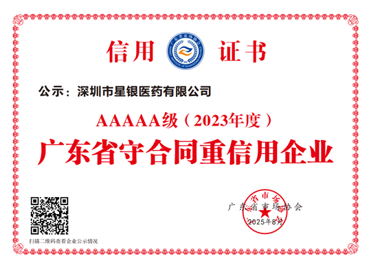 星銀醫(yī)藥榮獲“廣東省守合同重信用企業(yè)”AAAAA級(jí),信用建設(shè)邁上新臺(tái)階